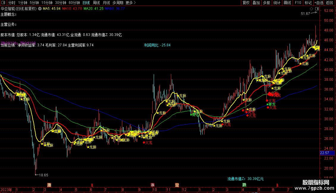 在技术形态上,指标线(如孕龙线、青龙线、火龙线)需与龙脉线形成严格的多头排列顺序,即自上而下依次排列,呈现向上发散态势,这是股价走强的重要基础。