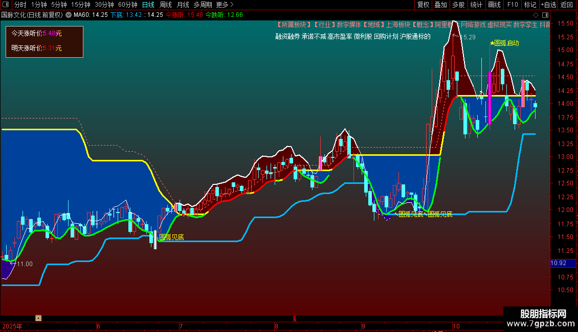 上顶:HHV(MA(MA(LOW,3),3),60)LINETHICK3,COLORYELLOW;