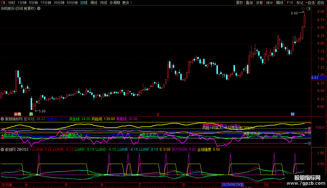 幅图指标是通达信兼容的画线类综合分析工具,围绕 “筹码状态、主力控盘、资金强度、风险等级、趋势乖离” 五大核心维度,通过信号线、分界线和动态标注,量化市场多空力量,提供明确的买卖点和仓位管理规则,适用于日线级别波段操作。