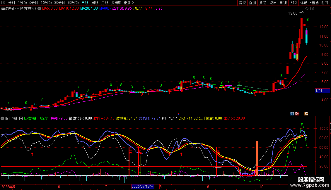 IF(牵牛线>REF(牵牛线,1),牵牛线,DRAWNULL),LINETHICK1,COLORFF00FF;