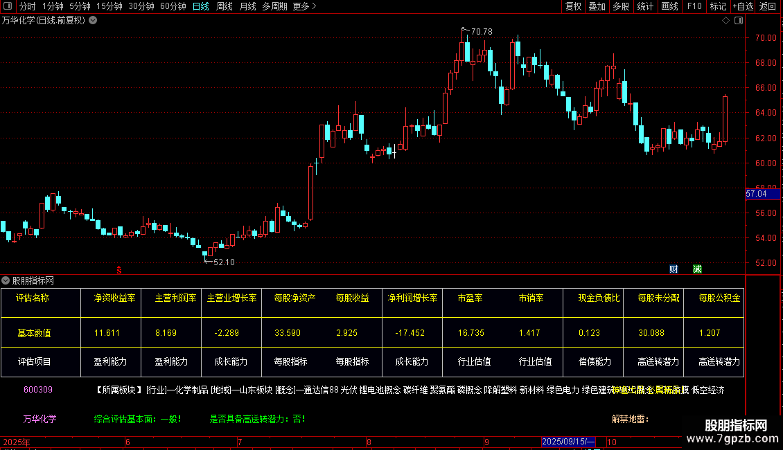 DRAWTEXT_FIX(一般,0.125,0.85,0,'综合评估基本面:一般!'),COLORGREEN;