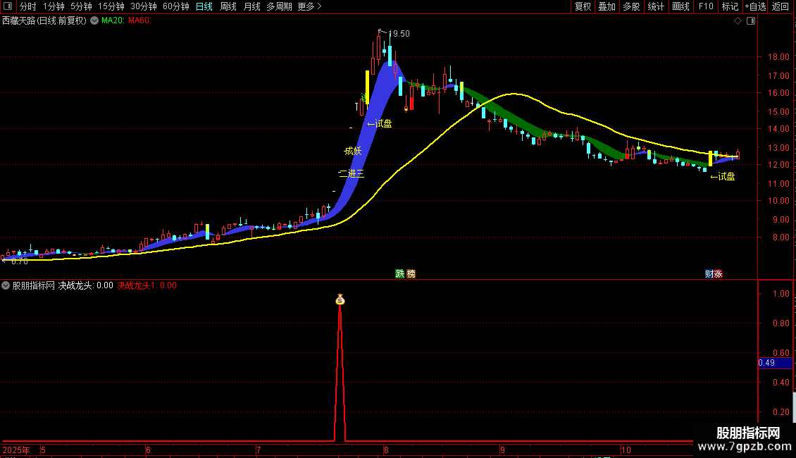持有:价格在红色趋势线上方运行时,中线持有;跌破生命线(30日均线)需警惕。