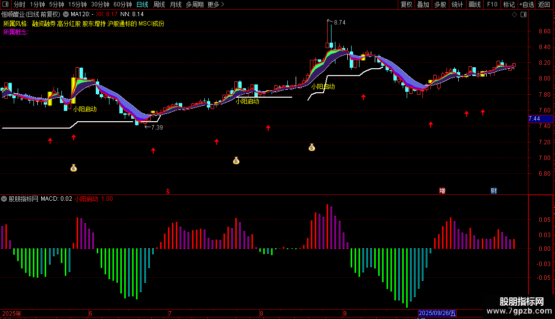小阳启动:DIF>DEA AND MACD>REF(MACD,1),COLORRED,NODRAW;