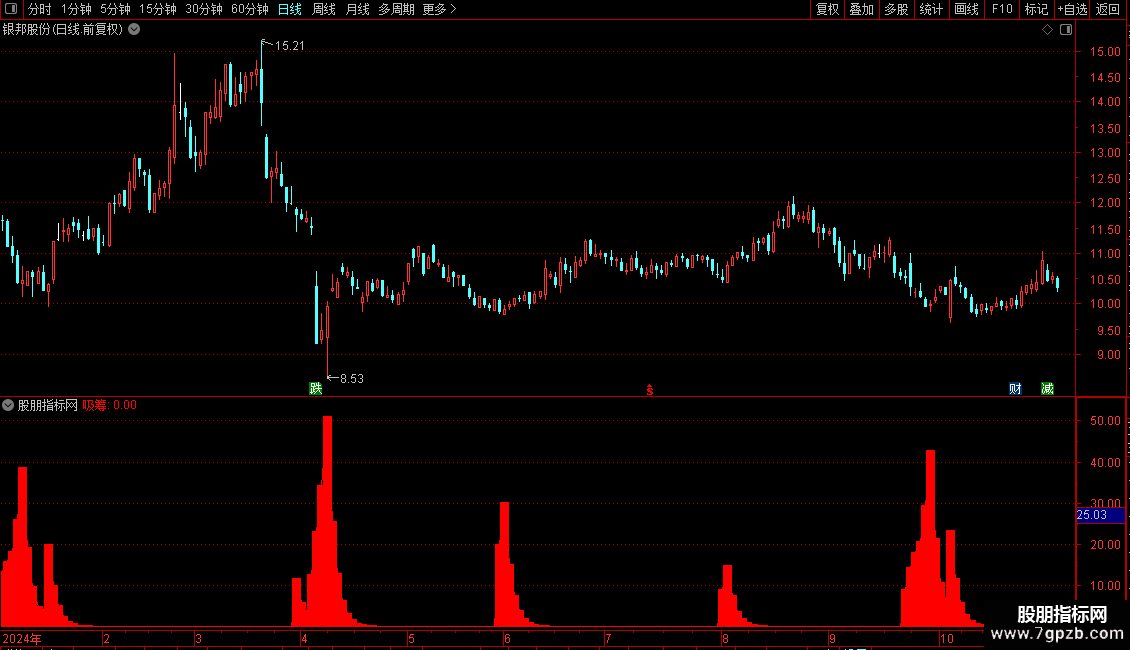 庄家吸筹:STICKLINE(吸筹>-150,0,吸筹,8,0),COLORRED;