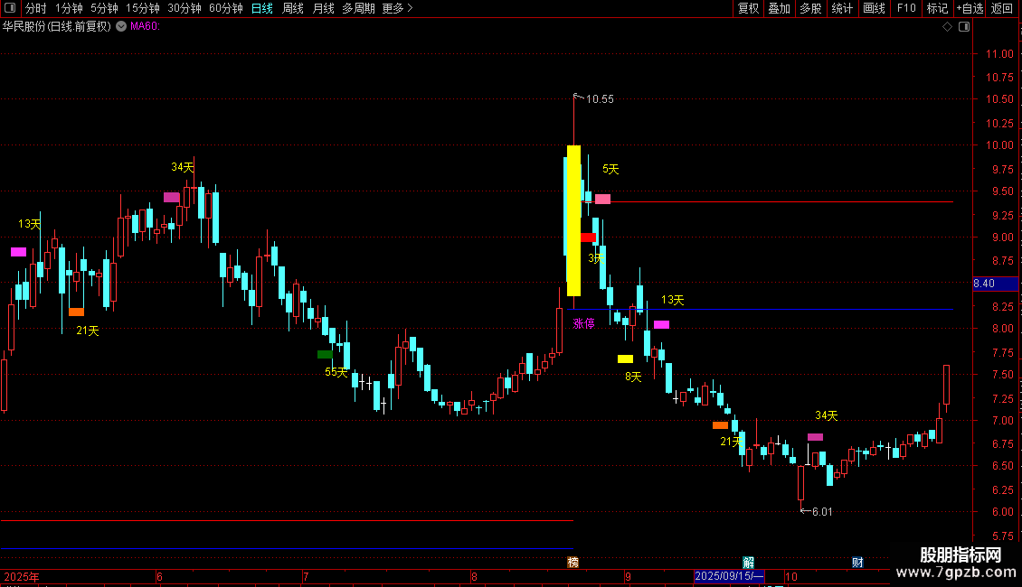 DRAWTEXT(VARZT=7,L*0.95,'8天'),COLORYELLOW;