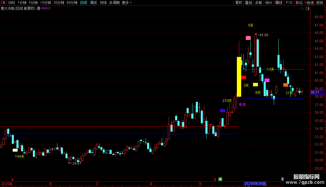 DRAWTEXT(VARZT=2,L*0.95,'3天'),COLORYELLOW;