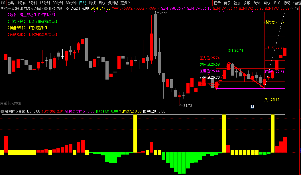 粉色柱状线:机构高度控盘,可能加速上涨