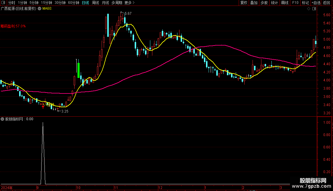 趋势线:MA(CLOSE,60),COLORLIMAGENTA LINETHICK2;
