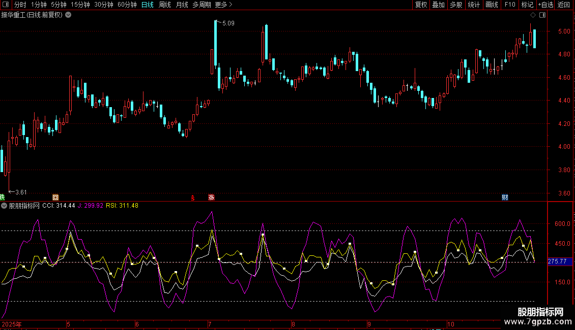 KDJ+CCI加上RSI这三个指标分别为J线,CCI线,和RSI线各为一条线,实现三个副图算法的合并显示(包括KDJ的J线、CCI和RSI三线同框),越简洁越实用,没有刻意找案例,随机截图,供参考!
