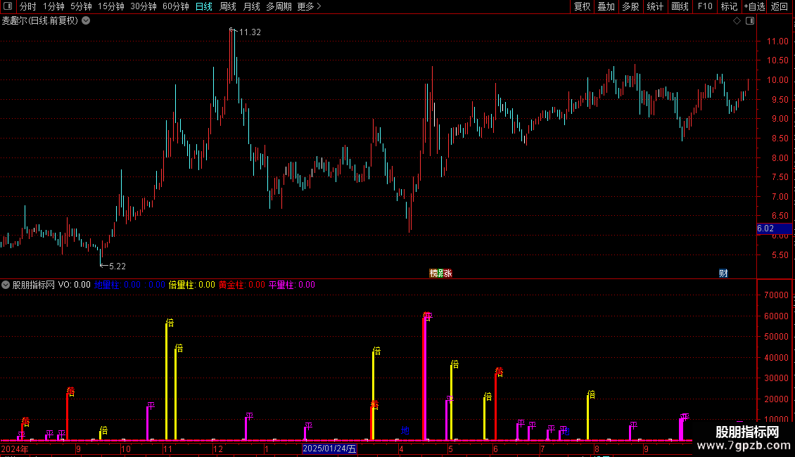 DRAWTEXT(地量柱,VOL+3000,'地'),COLORBLUE;