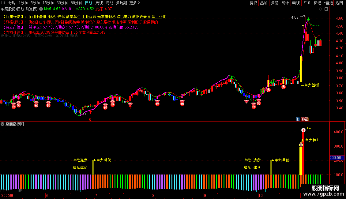 主要功能:通过多重技术指标综合判断股票买卖时机。它融合了价格趋势、动量变化、超买超卖状态和主力资金动向等多维度信号,在不同阶段给出明确的建仓、洗盘、主力潜伏等提示。
