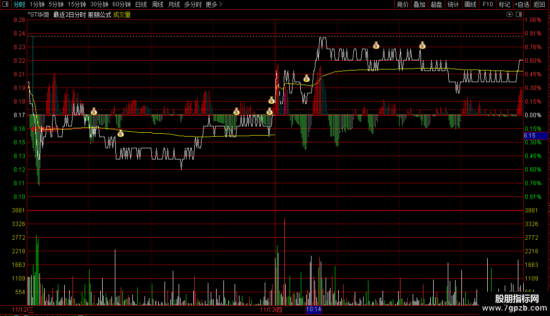 均线:=IF(BETWEEN(C/(SUM(AMOUNT,0)/SUM(vol*100,0)),1.05,0.95)=0,MA(C,0),(SUM(AMOUNT,0)/SUM(VOL*100,0))),COLORYELLOW,DOTLINE;