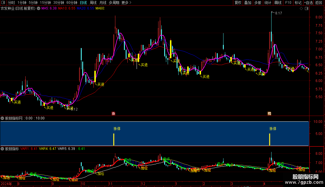 买赋值:2日内A8的最低值=7日内A8的最低值 AND 统计2日中满足A8<0的天数 AND A8上穿A8的2日简单移动平均