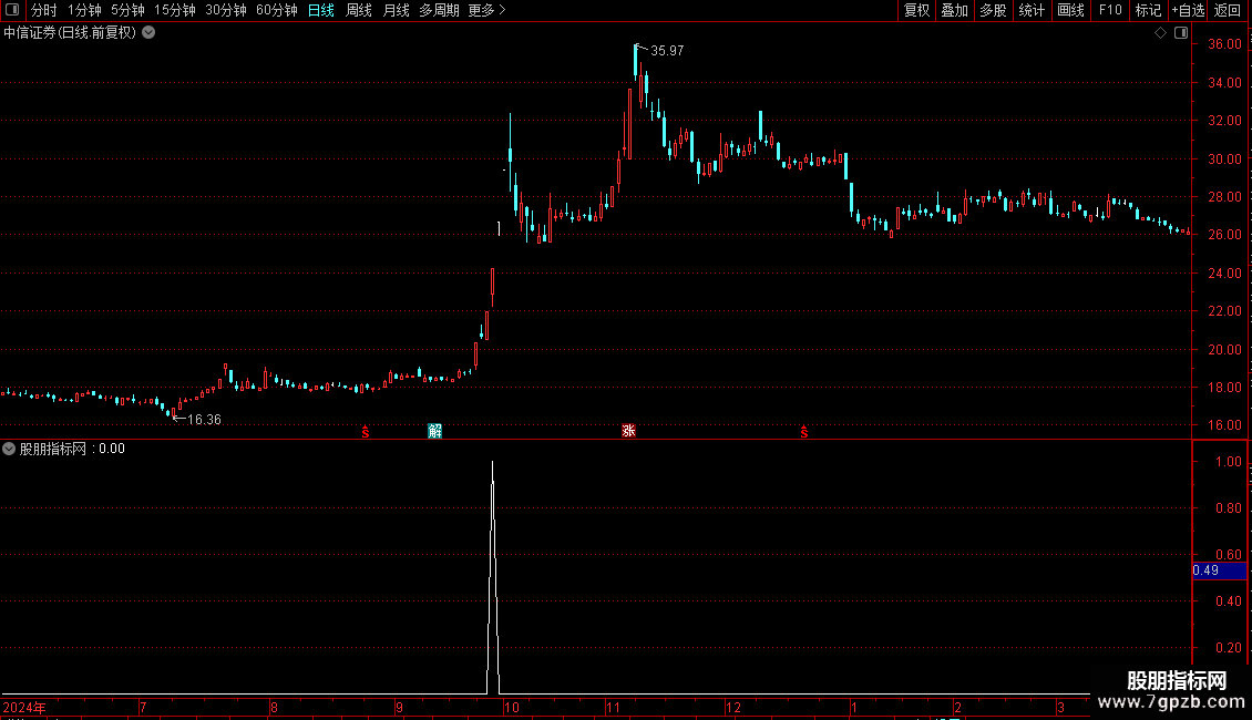 该指标为附图指标也可用作日线选股,在此提醒本指标为学习参考之用不作为实战买卖之唯一决策,如因该指标盲目有操作南极不负担任何责任。