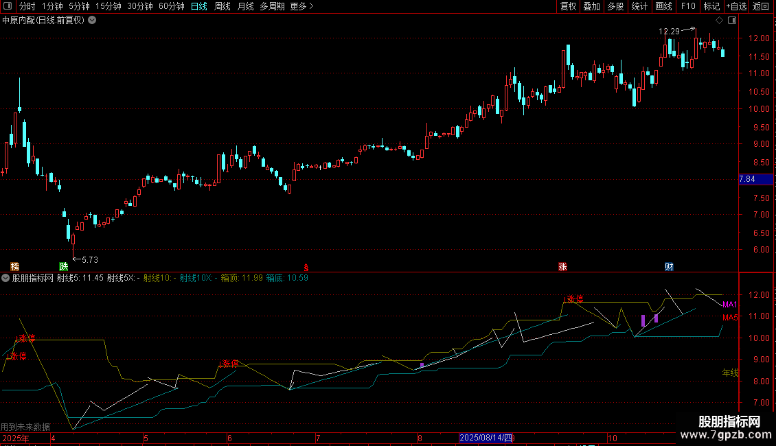 射线5X: DRAWLINE(L=LLV(L,5),L,H=HHV(H,5),L,0),COLORLIGRAY;