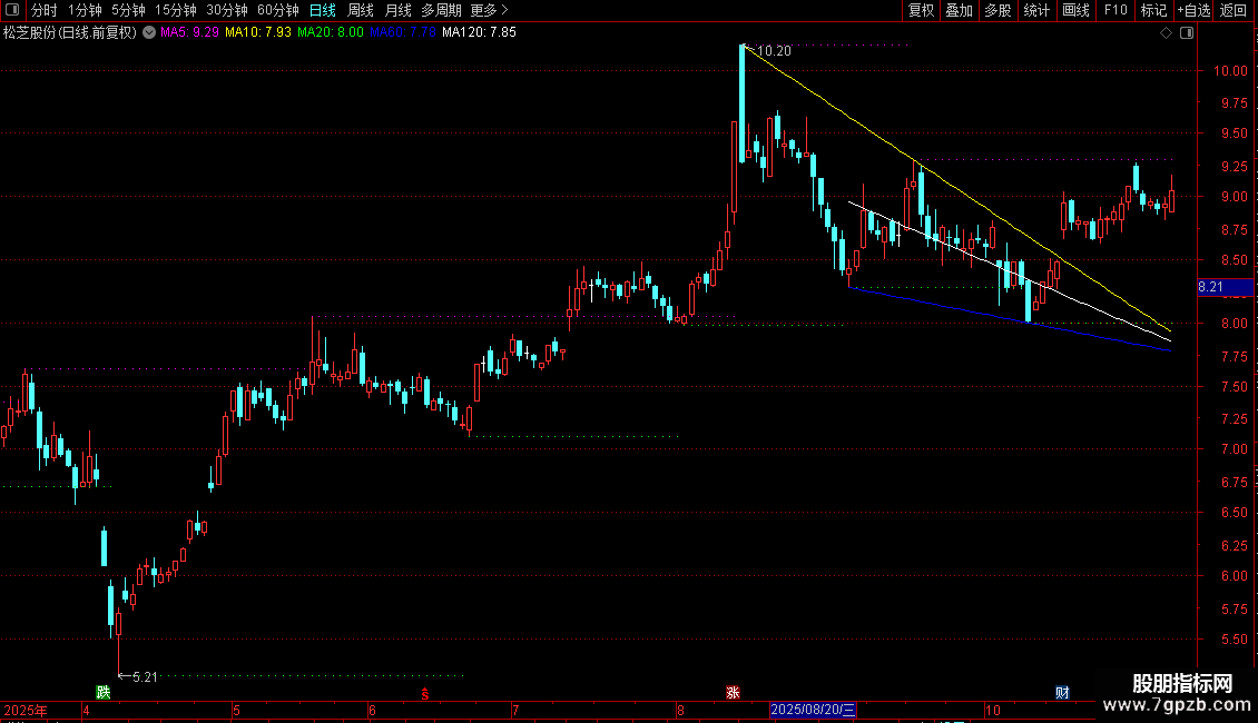 压力:REF(HIGH,BARSLAST(云溪散人)),COLORFF00FF,POINTDOT;