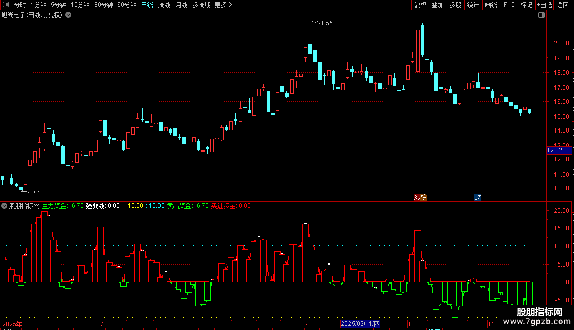 主力资金:(B-B1)*100/B, LINETHICK2,COLORGREEN;