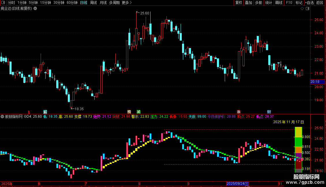 支撑:IF(CURRBARSCOUNT<=N/30,DD+KJ*0.191,DRAWNULL),COLOR00FFFF;