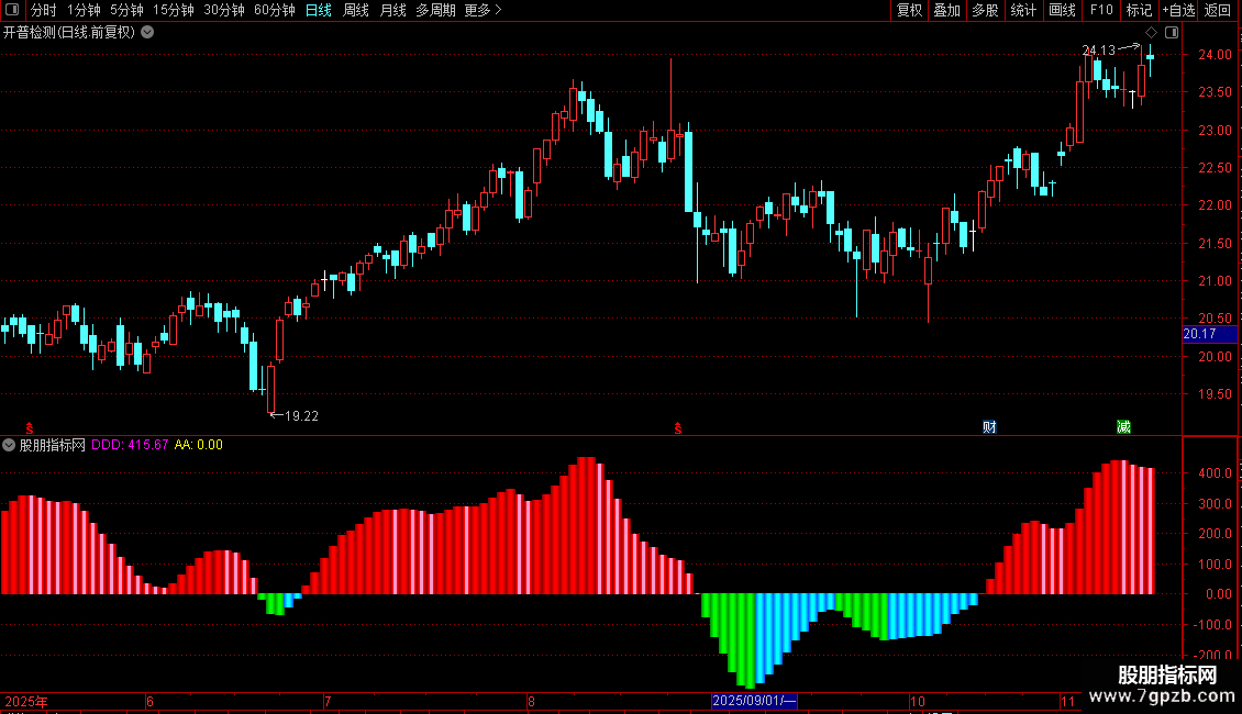 STICKLINE(主力>REF(主力,1) AND 主力<0,主力,0,1,0),COLORCYAN;