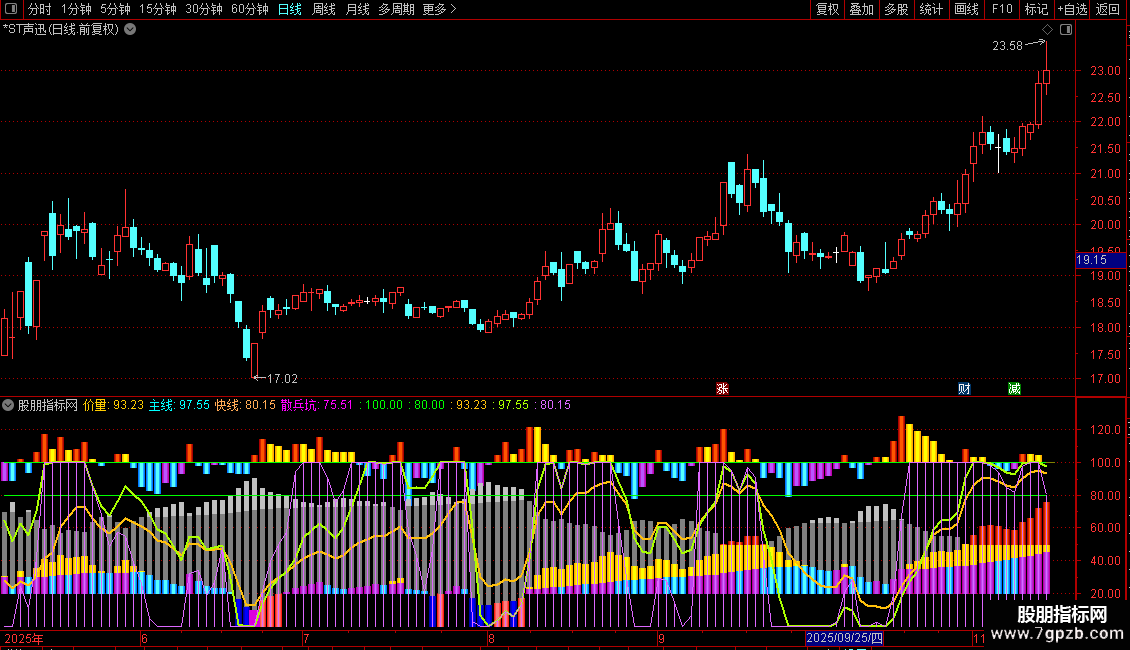 STICKLINE(ZZLKP>REF(ZZLKP,1) AND ZZLKP<20,ZZLKP,0,2.5,0 ),COLOR131FFD;