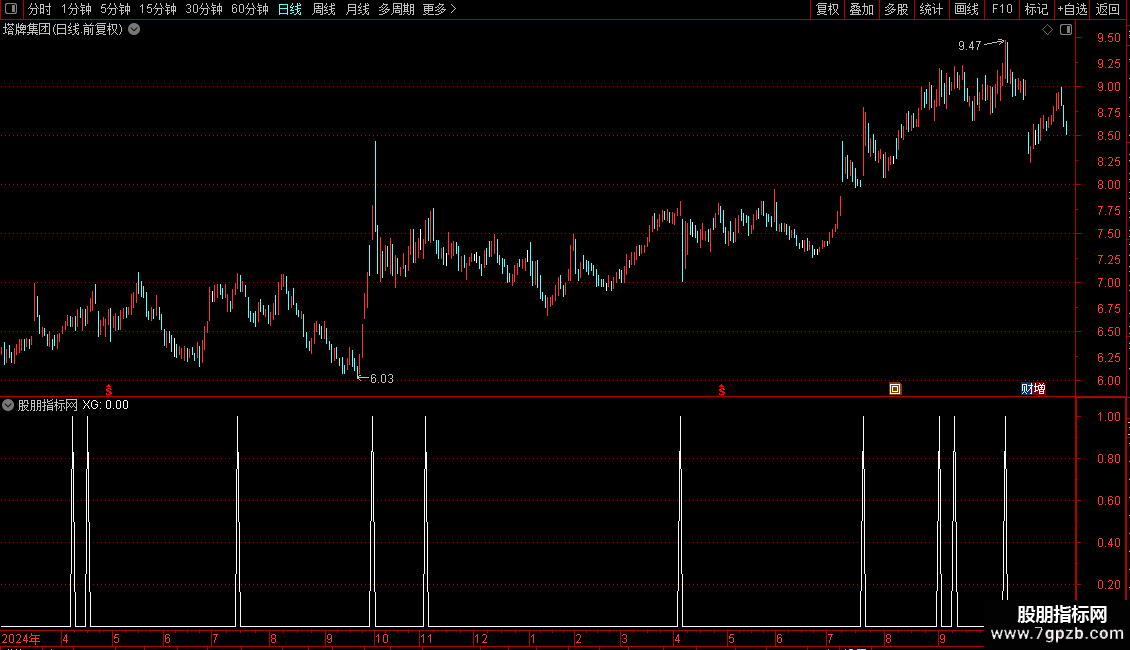 牛股持股线:=IF((HHV(MA5,100)=MA5),HHV(MA5,100),DRAWNULL),COLORRED,LINETHICK3;