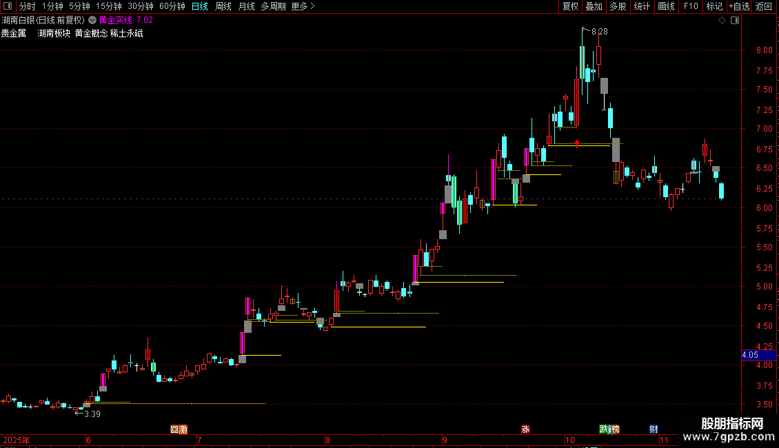 黄金虚线:IF(X_46,X_47,DRAWNULL),POINTDOT,COLORYELLOW;