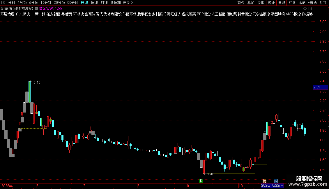 X_46赋值:显示黄金线=1 AND X_44>=X_45 AND X_45=1日前的X_45