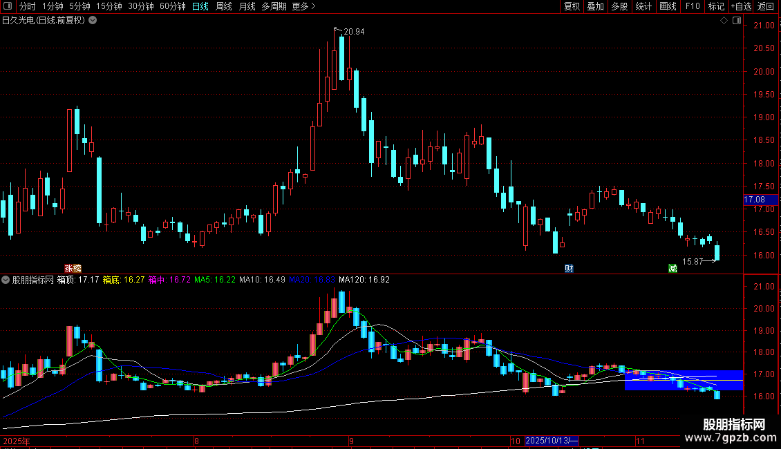 当满足条件是否最后一个周期=1ANDLJ 当满足条件是否最后一个周期=1ANDLJ=ZT时,在HT和LT位置之间画柱状线,宽度为N*8,0不为0则画空心柱.,画深灰色