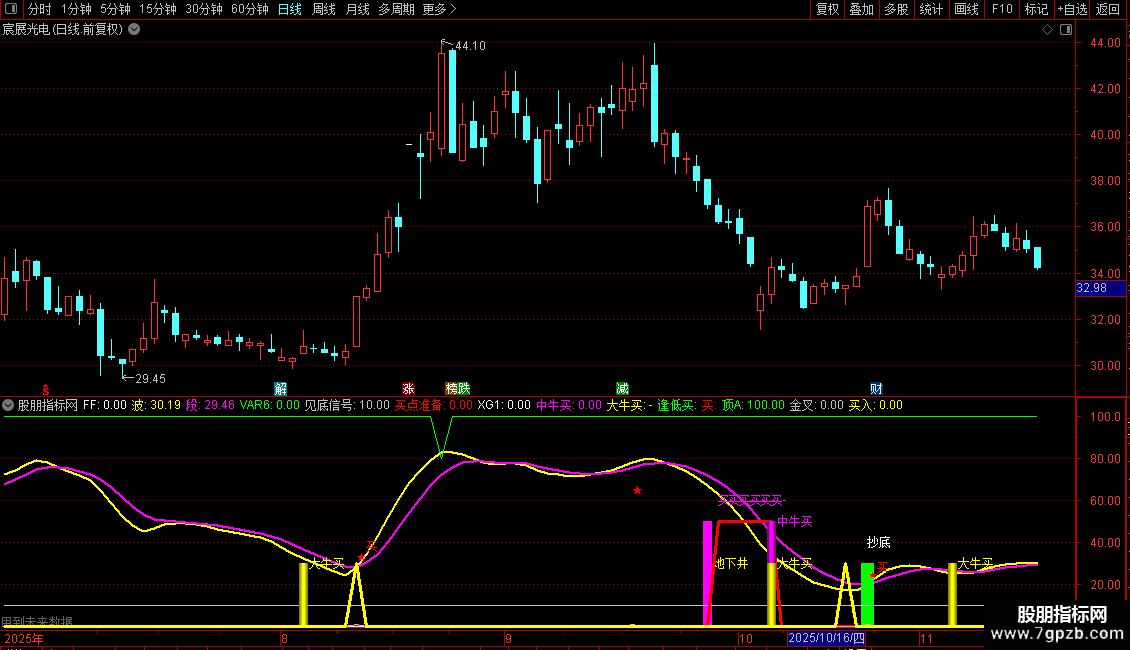DRAWTEXT(TJ1,50,' 中牛买'),COLORFF00FF;