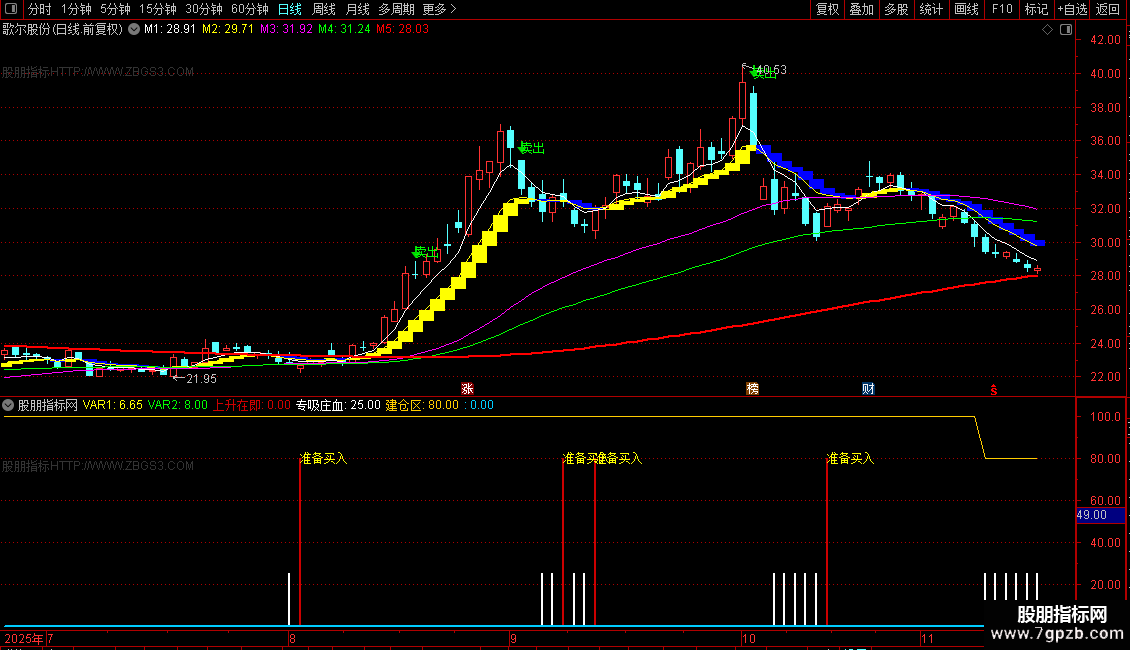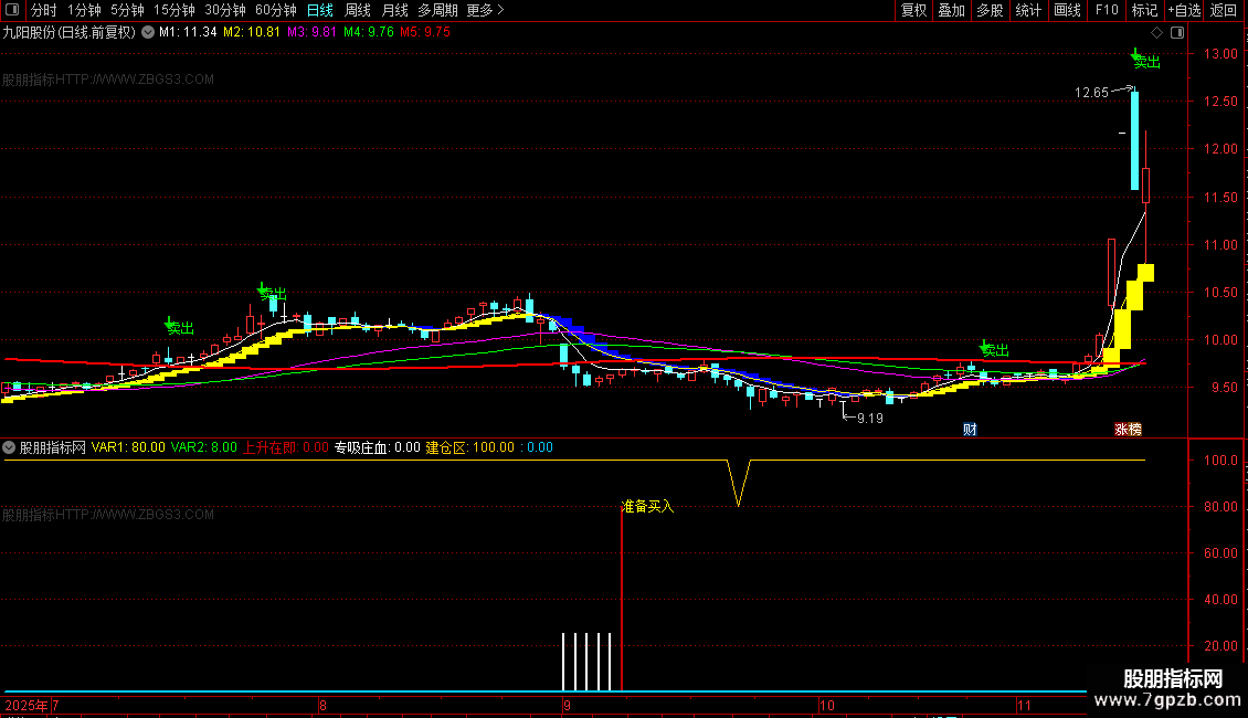 3、双指标协同运用:主图出现黄色买入信号时,需确认副图同步出现买入信号再介入,静待主力拉升。