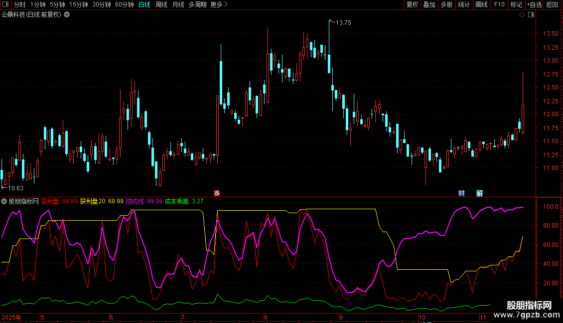 获利盘20:HHV(获利盘,20),COLORYELLOW,LINETHICK1;