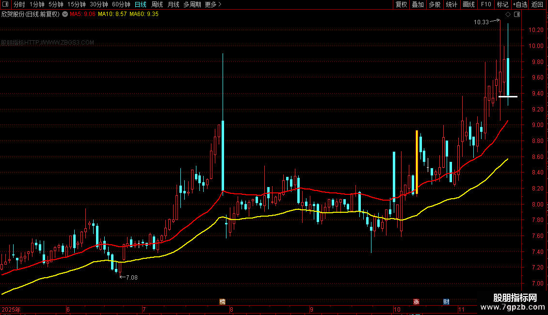 DRAWTEXT_FIX(C>O,0,0.07,0,'股朋指标http://www.ZBGS3.com'),COLOR333333;