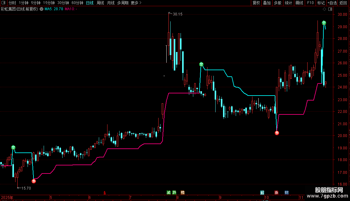 指标通过计算价格波动区间和移动平均线,识别市场中的多空转换临界点。主要功能是捕捉主力资金动向,在趋势转折时提供买卖信号。