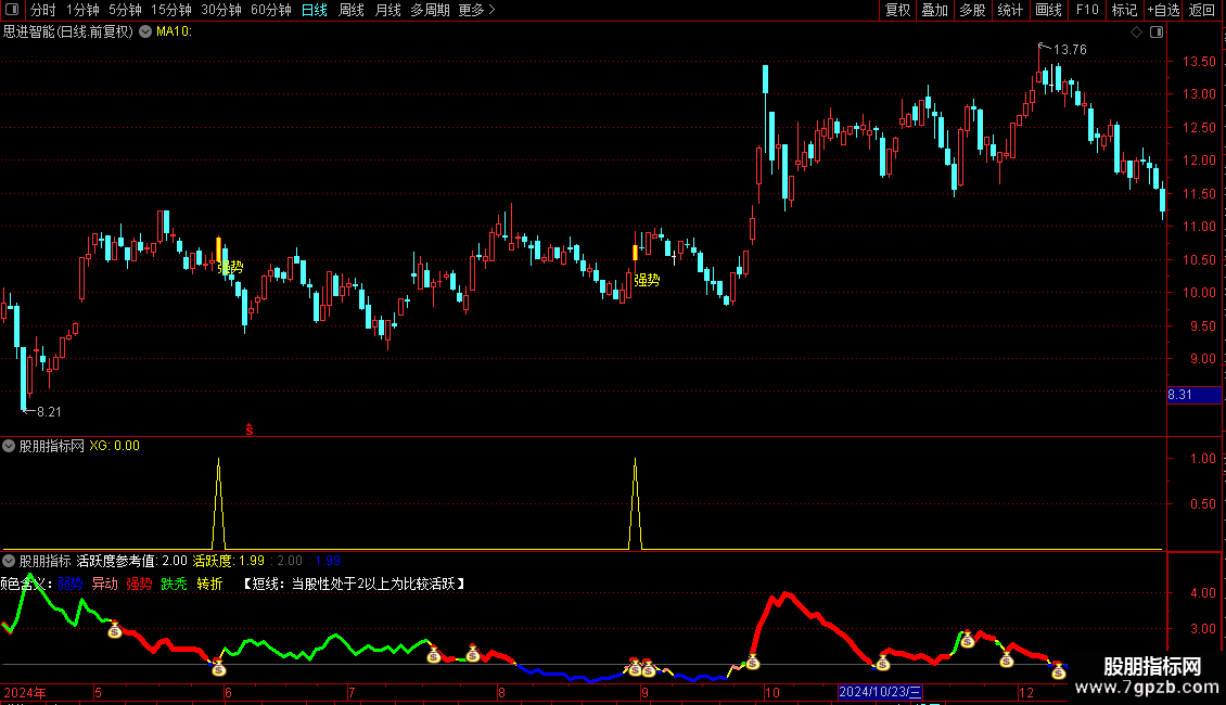 DRAWTEXT_FIX(1,0.4,0.02,1,'【短线:当股性处于2以上为比较活跃】'),COLORWHITE;