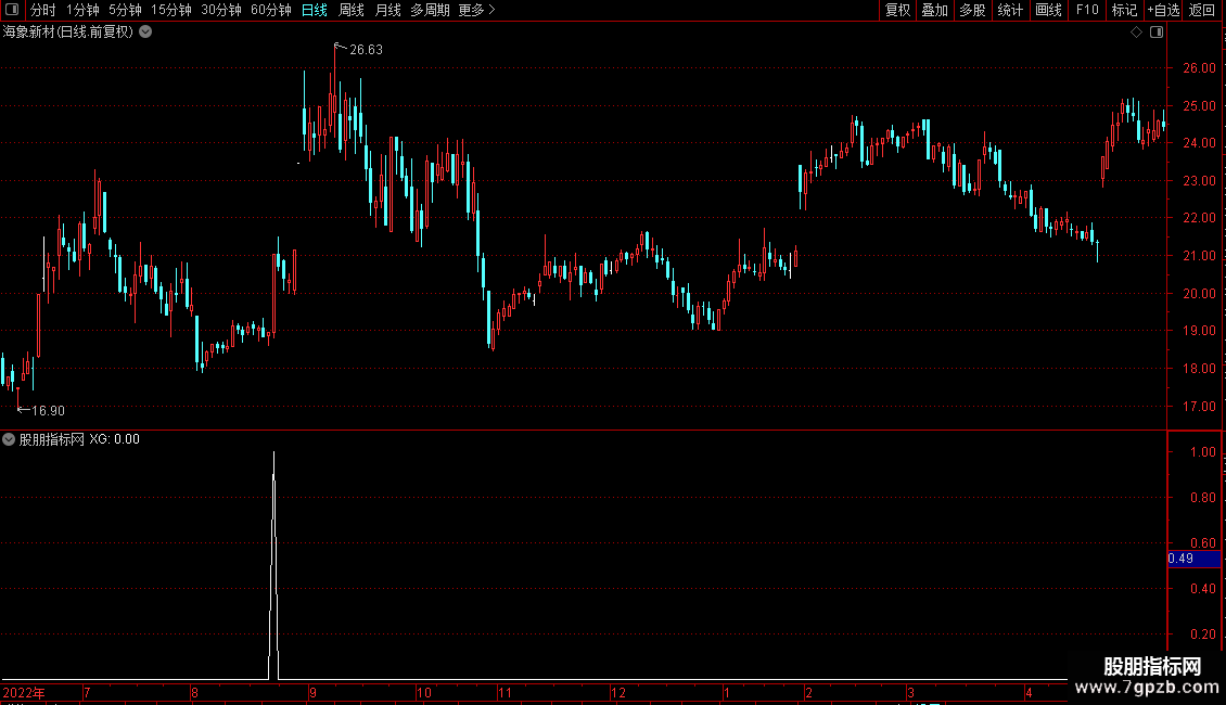 选股赋值:X_25 AND 收盘价/1日前的收盘价>1.095 AND X_27 AND X_26