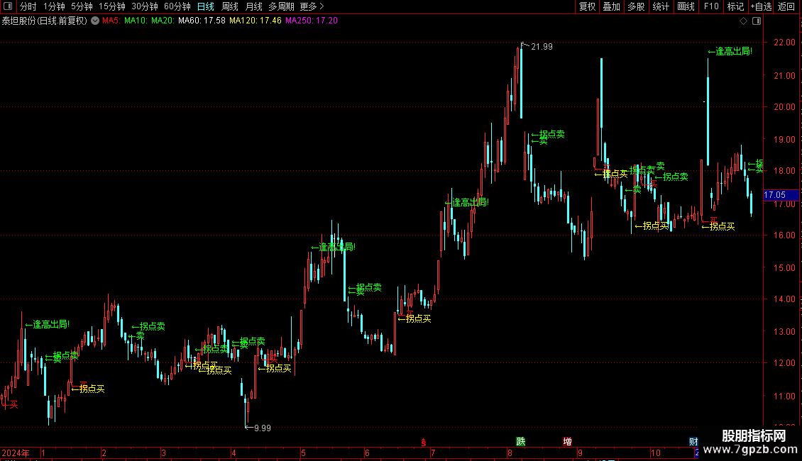 DRAWTEXT(CROSS(MA15,FF),(HIGH * 1.02),'←拐点卖'),COLOR00FF00;