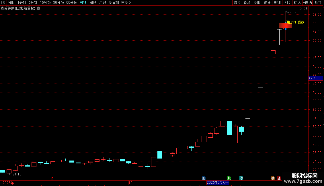M7赋值:(收盘价的P7日简单移动平均 * 如果(N<7),返回WX,否则返回1)