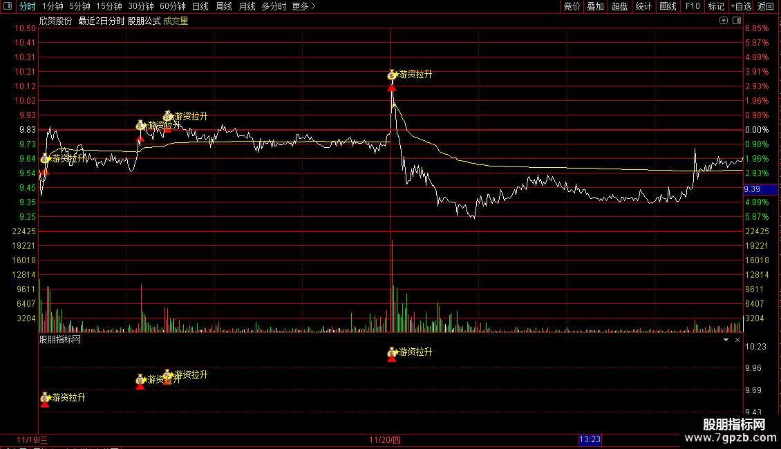 『分时游资拉升』指标 盘中发现游资拉升信号的分时图工具