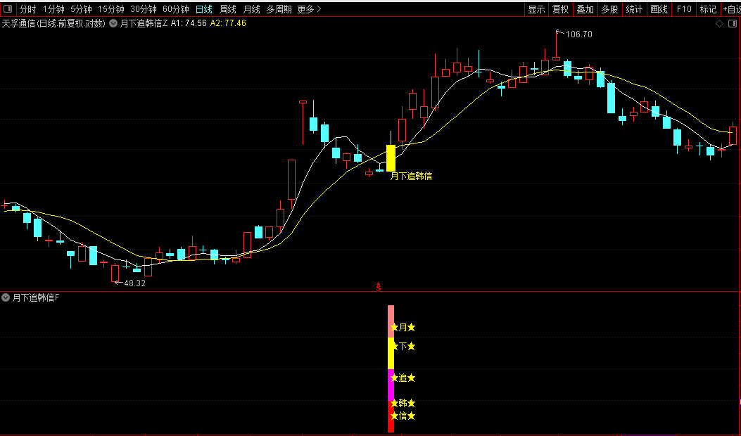 通达信【蒹何月下追韩信】主副/选股回调放倍量二波买入指标源码分享
