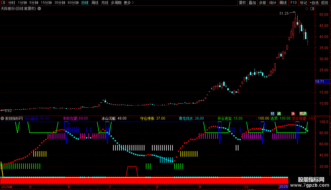 此指标通过多条件交叉验证技术,大幅降低波段交易假信号频率,尤其适合中短线波段交易策略。实际应用中需严格执行区域边界规则,避免过度解读中间状态信号。
