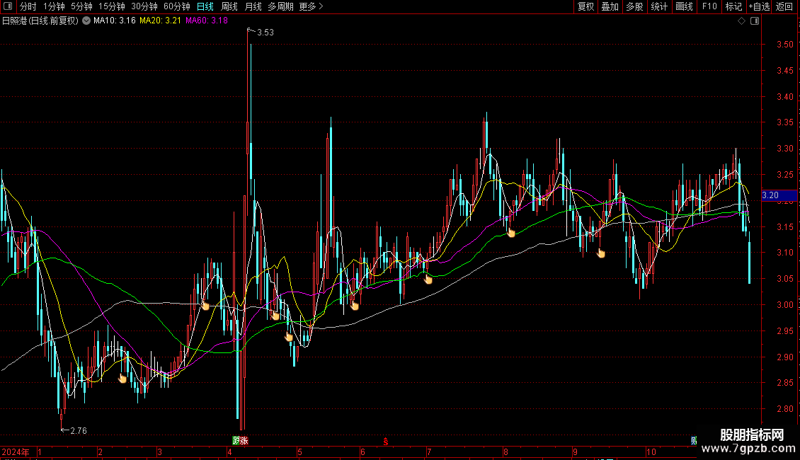 1、均线采用MA3、MA5、MA13、MA34、MA55、MA90。猴子爬杆出现在90M之上为高位区,强势区;再细分在34M之上、34M处、34M之下、90M处四个位置。