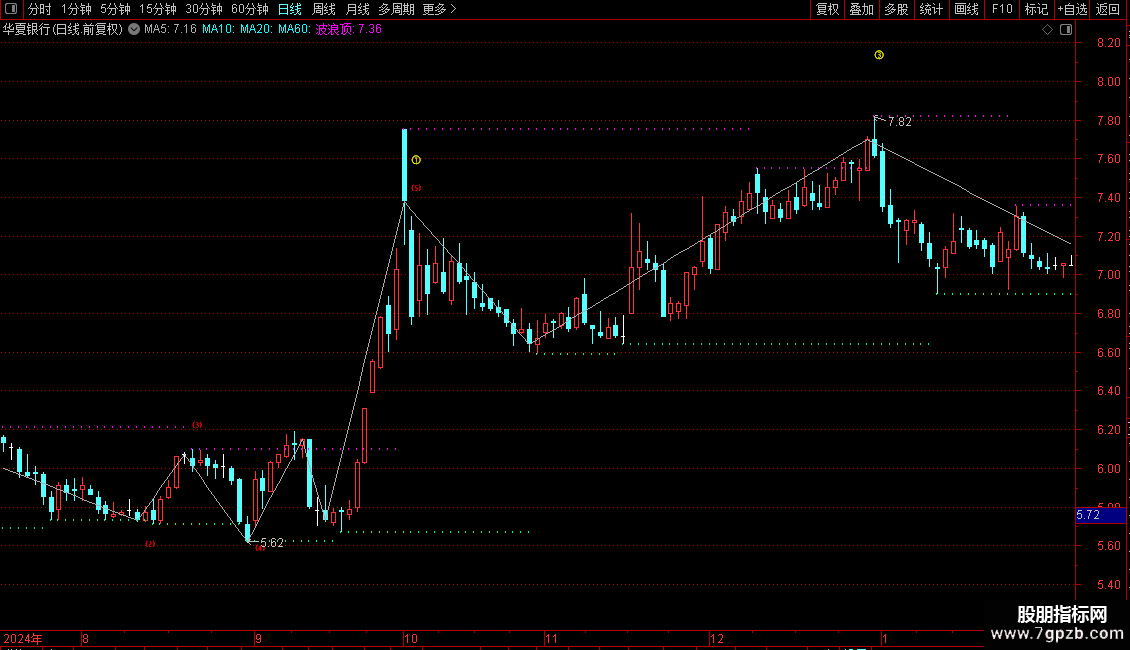 波浪顶:IF(T1,A,A),COLORFF00FF,POINTDOT,LINETHICK2;