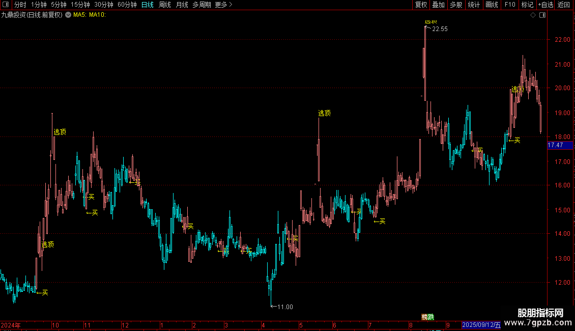 DRAWTEXT(CROSS(84,VAR7),H*1.01,'逃顶'),COLORYELLOW ;