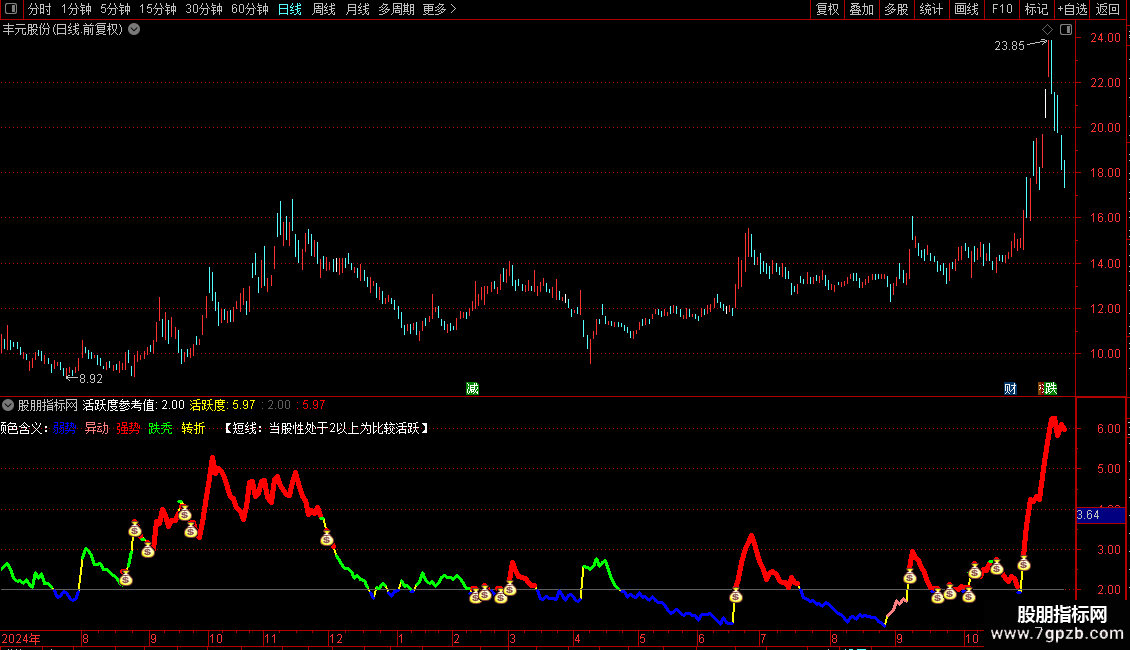 DRAWTEXT_FIX(1,0.4,0.02,1,'【短线:当股性处于2以上为比较活跃】'),COLORWHITE;