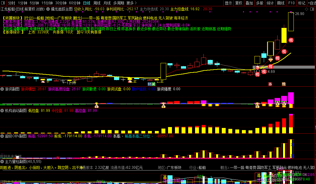 通达信【擒龙追踪】主图/主力量柱/超级OBV/机构启动/游资副图指标共振源码