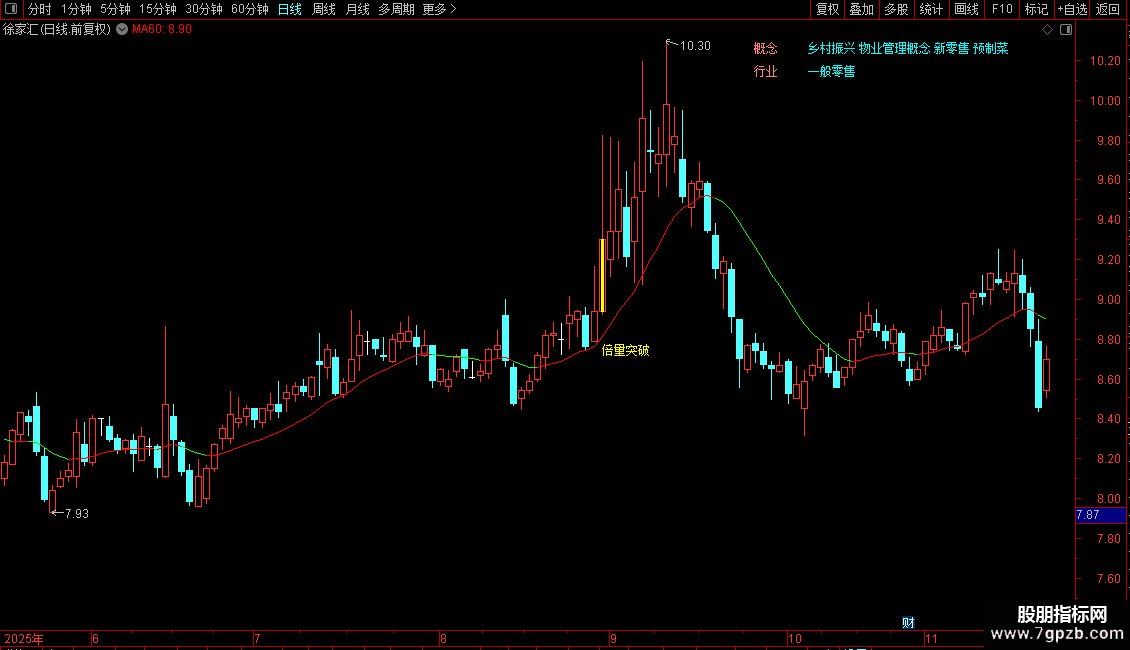 DRAWTEXT(ZBGS_7,L*0.98,'倍量突破'),COLORYELLOW;