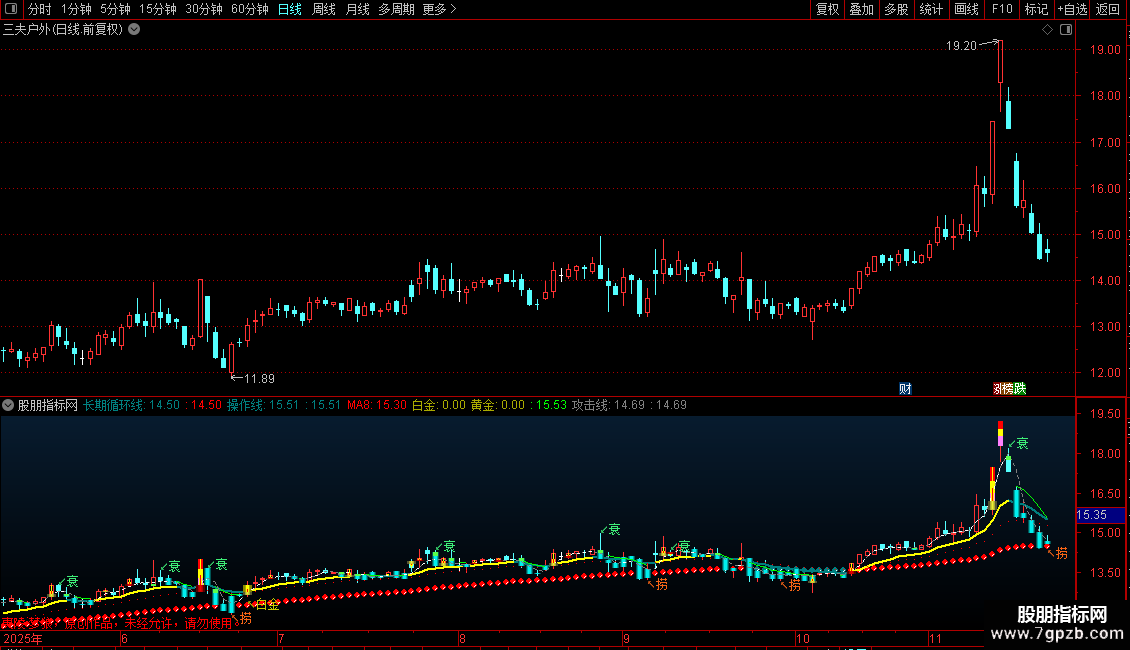 DRAWTEXT_FIX(1,0.0,5,0,'夷陵 梦狼,原创作品,未经允许,请勿使用。'),COLORRED;