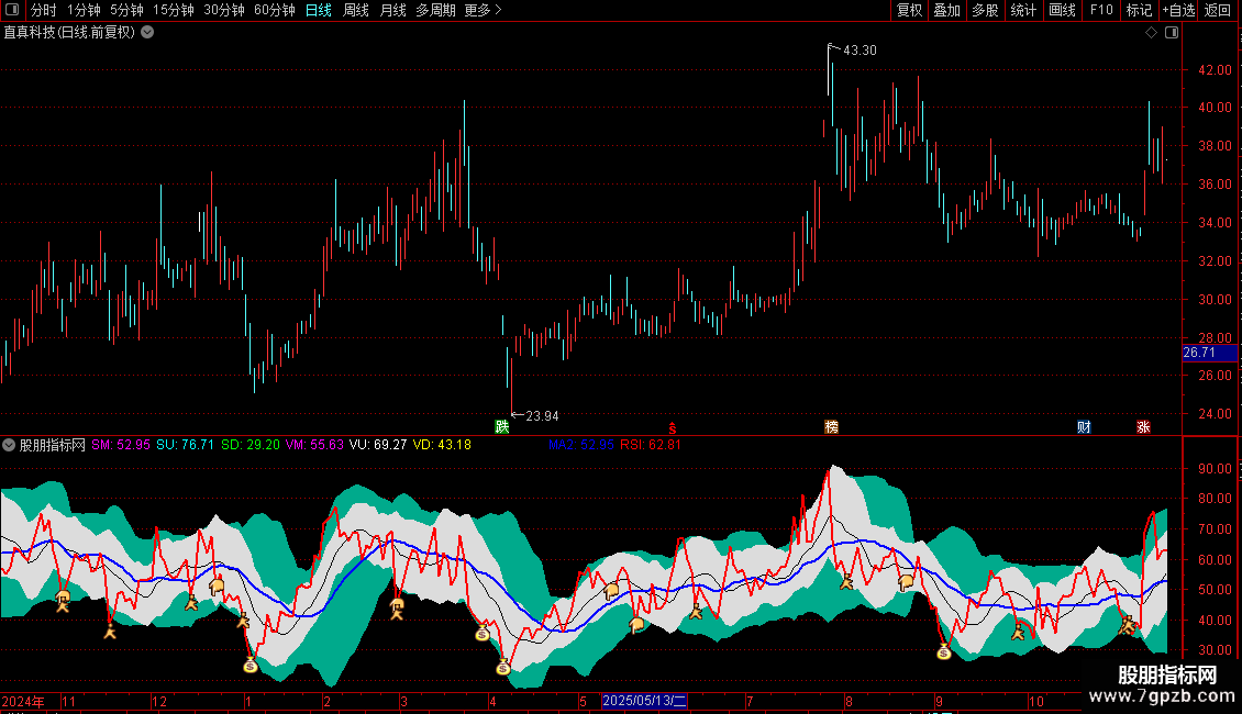 长短5倍:=DRAWTEXT(长期/短期>5,(50),'5'),COLORFFFF00;
