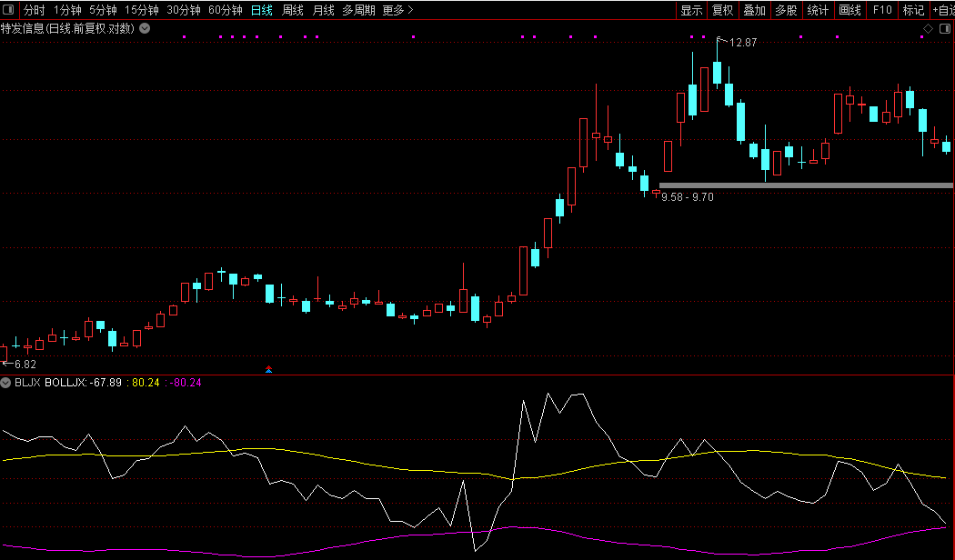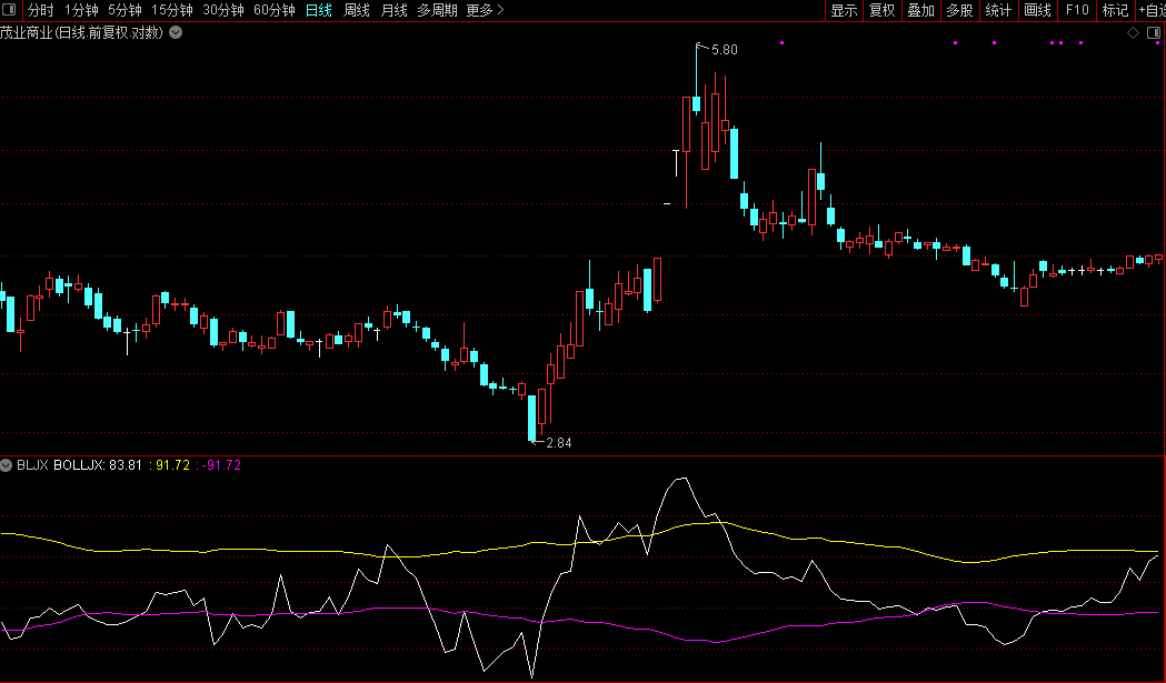 最近在抖音看到指南针新布林极限的图表展示,这种波动累计模式(上下轨统计)被应用于分时分析。
