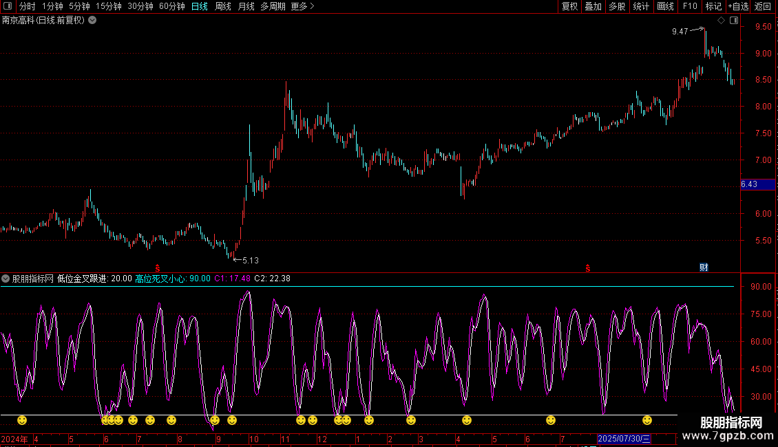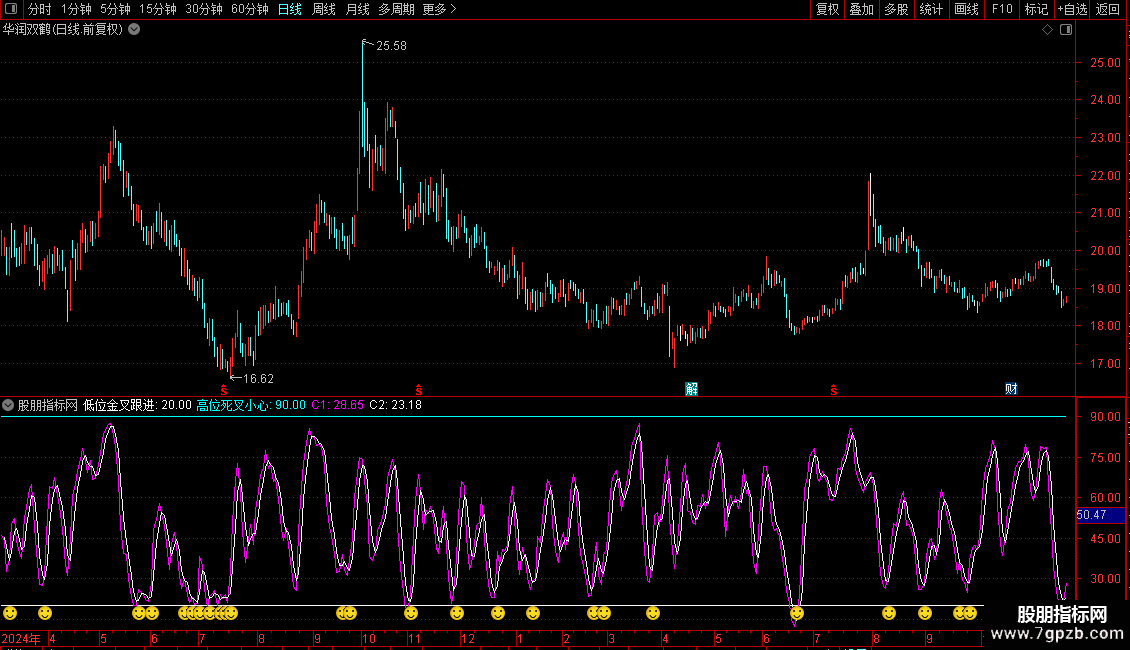 C1:(EMA((((VAR2-VAR4)/(VAR5-VAR4))*100),4)*VAR1),COLORFF00FF;